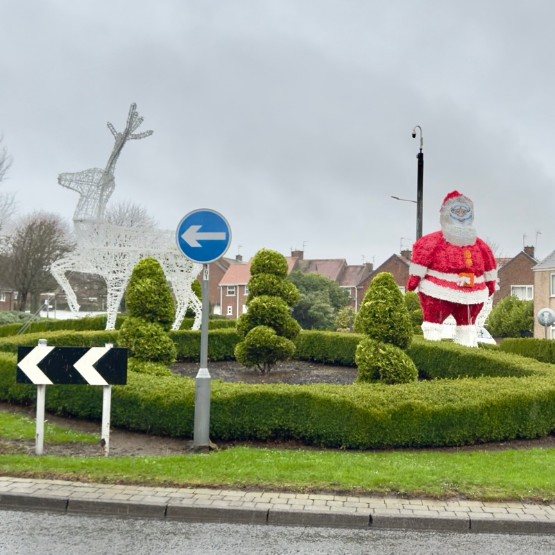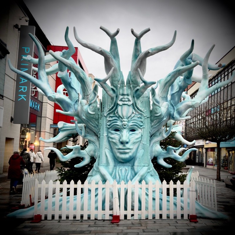 A sculpture in Sunderland town centre, showing the Ice Queen on one side, and the Ice King on the other side.