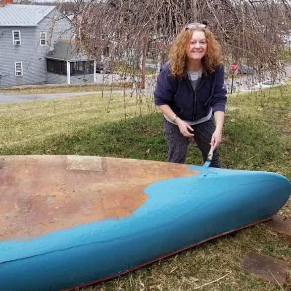 Giving the canoe a lick of paint so it matches The Blue House.
