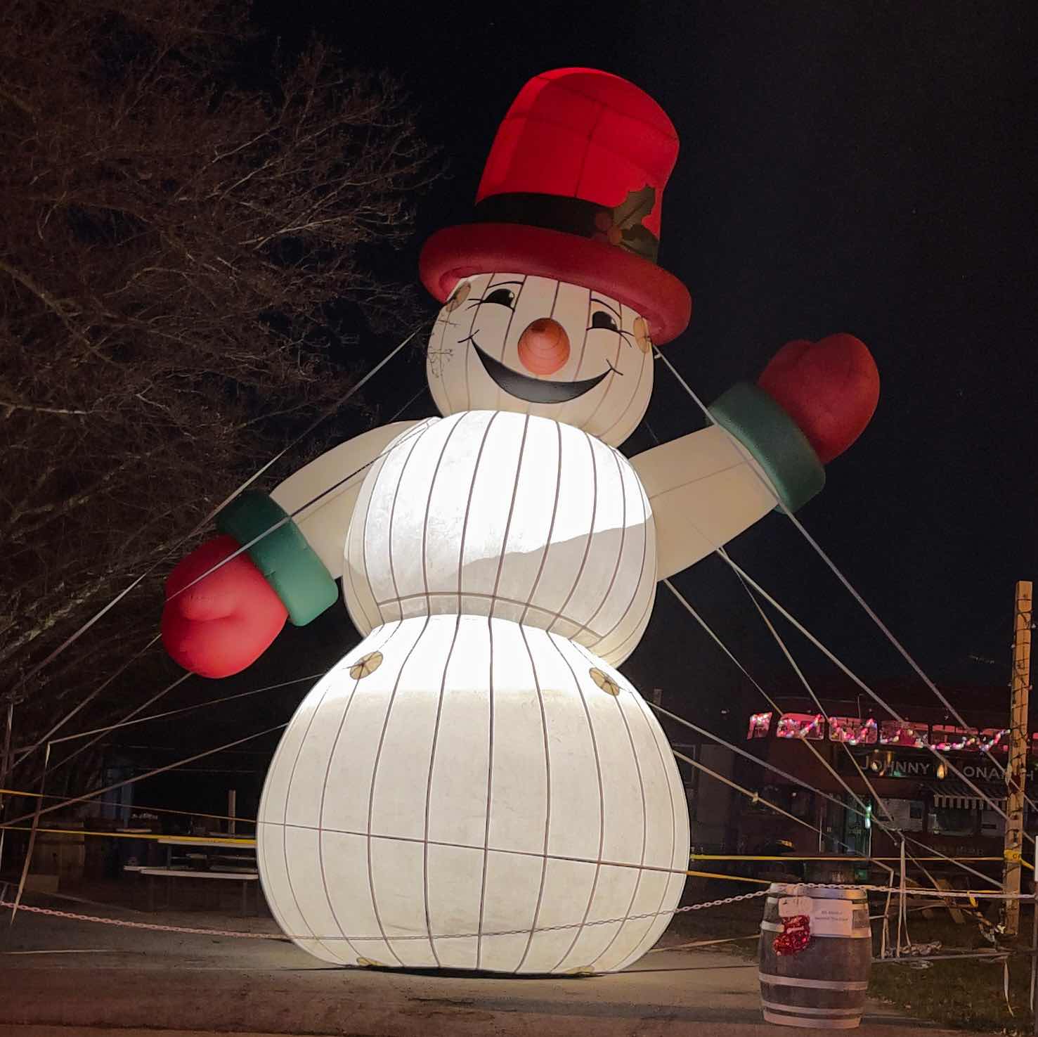 I had to pass this cheery snowman in Marshall again, early this morning, just because I was curious to see if he’d be illuminated at night. I wasn’t disappointed, you just have to smile when you see this guy! He’s at least 20ft tall.