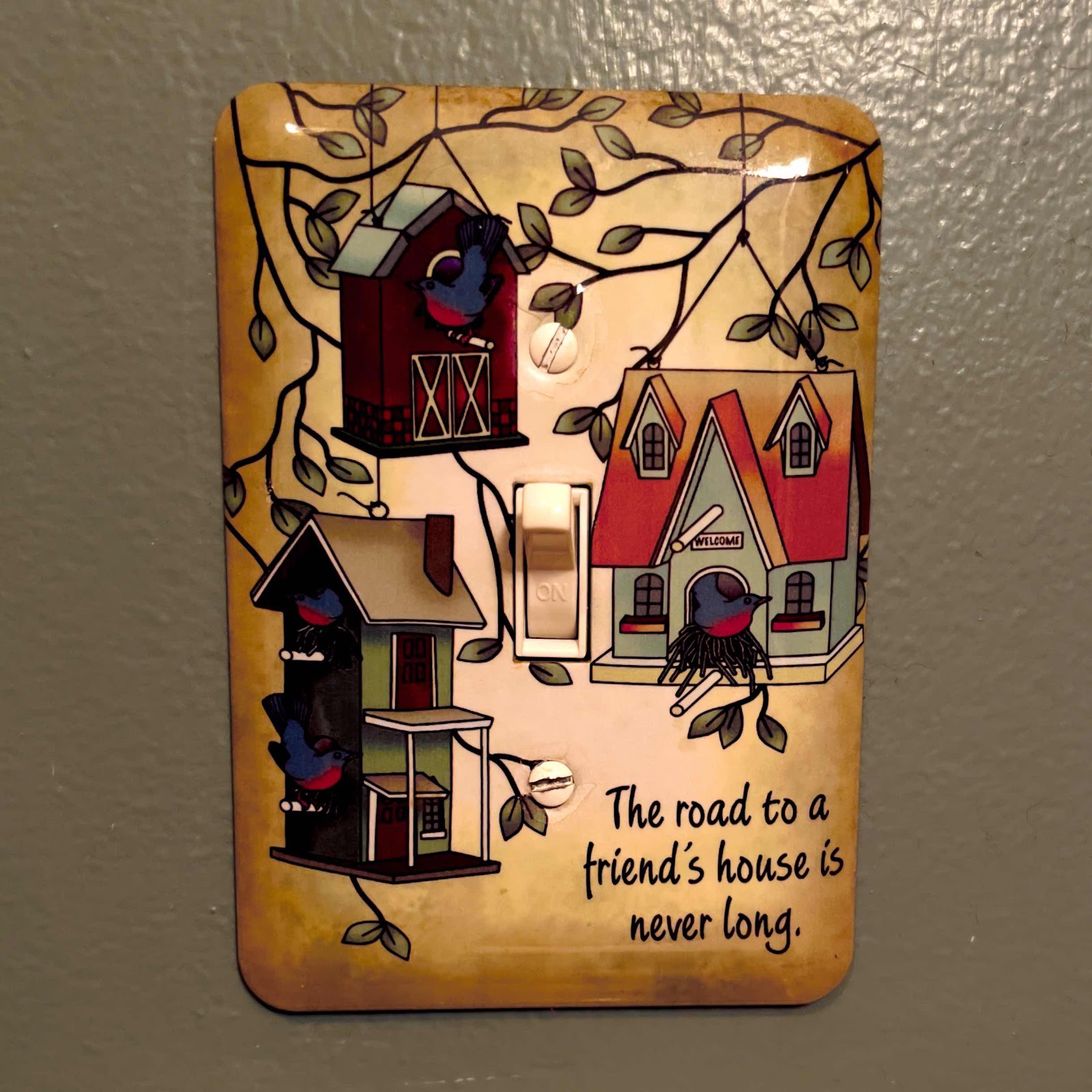 When I bought this house, these switch plates were everywhere. I’ve replaced many with other ‘art’ plates, but I’ve kept a couple of these as I like the message.