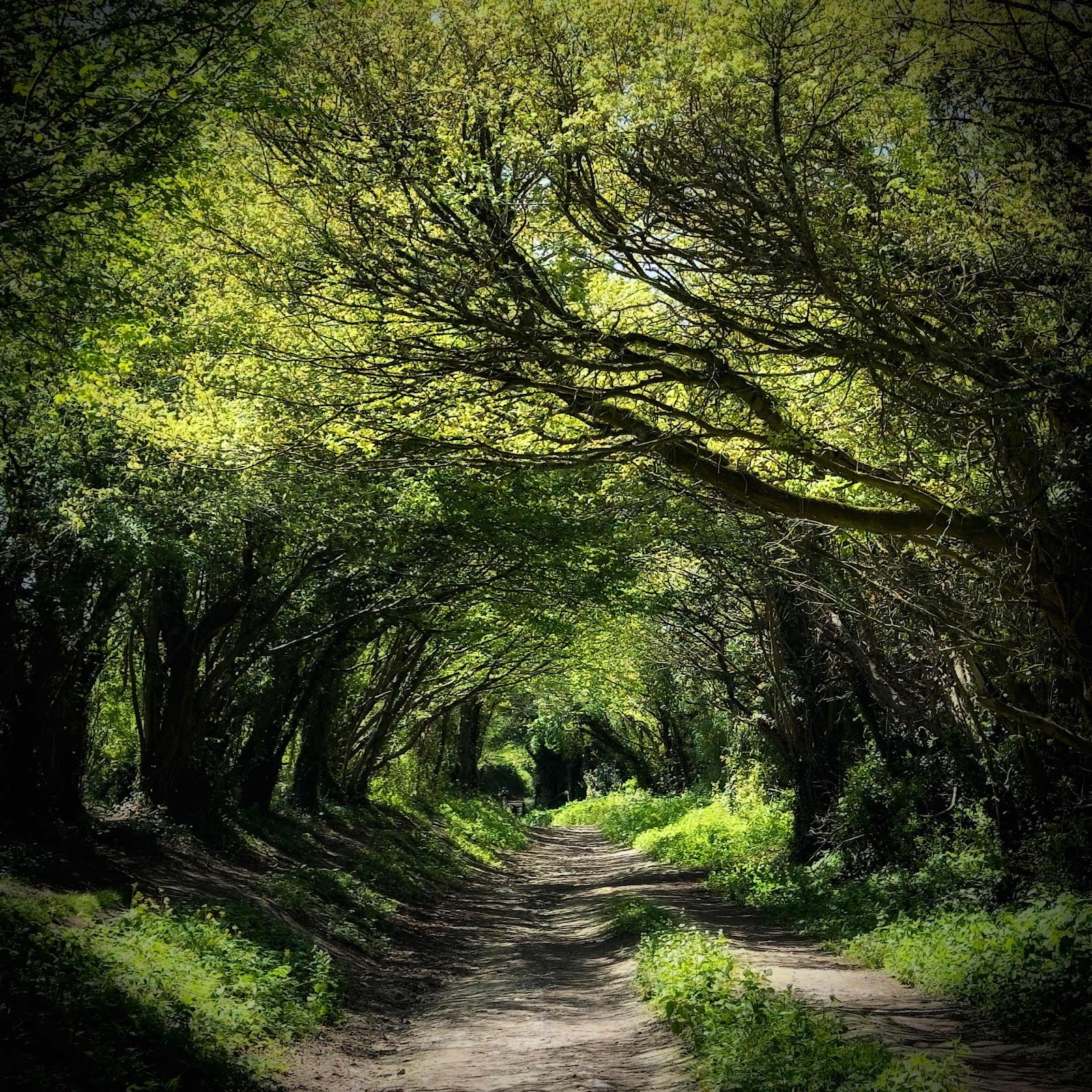 A beautiful tunnel of trees, on an old Roman road, at Halnaker in Sussex.