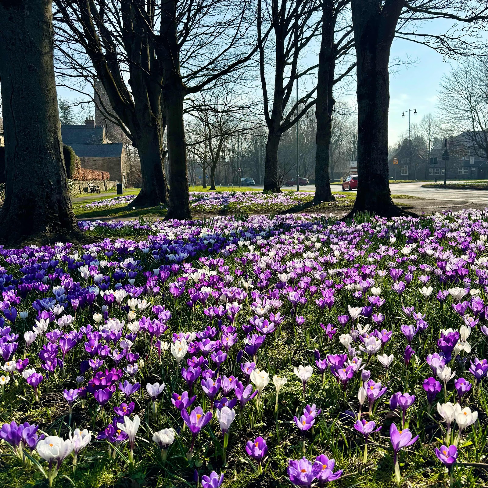 Had a lovely lamb shoulder roast dinner, followed by treacle tart with custard and ice cream, with a group today, and this beautiful display of crocuses was outside the pub.