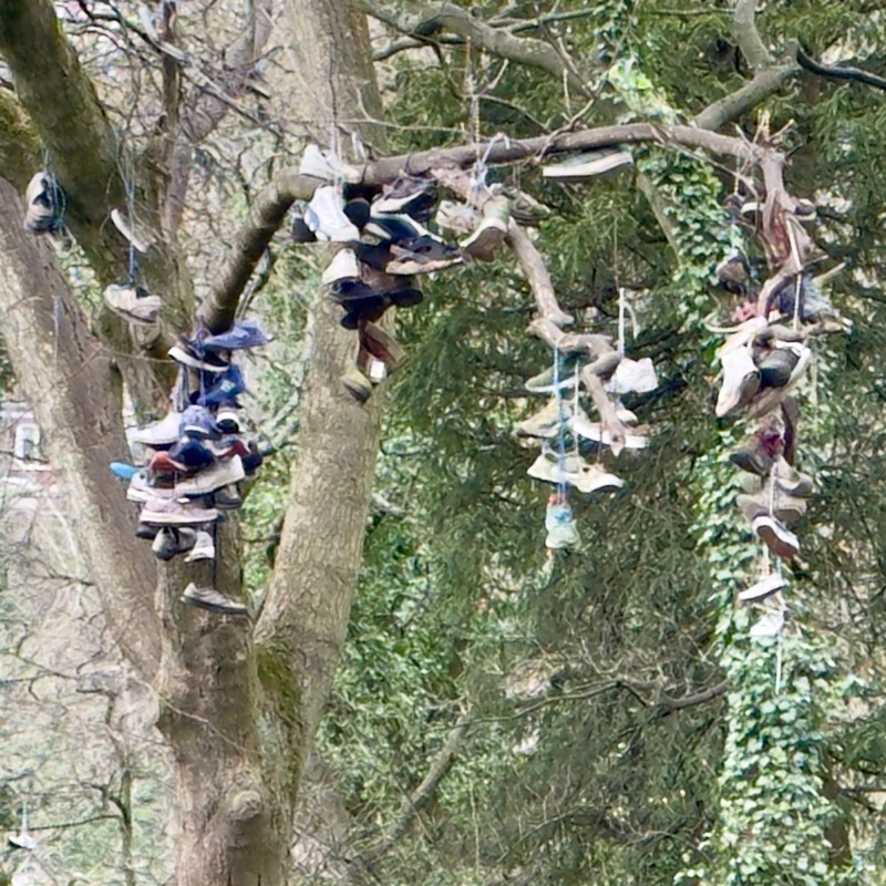 Walking around Jesmond Dene, Newcastle, we saw a huge tree covered with pairs of shoes. Apparently, an ‘art installation’ by students.