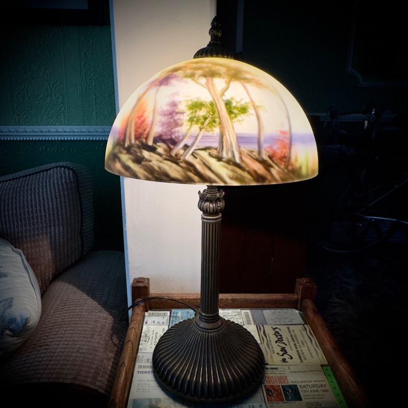 Found a lovely reverse painted lamp on Marketplace for a steal. It looks lovely in my lounge.
