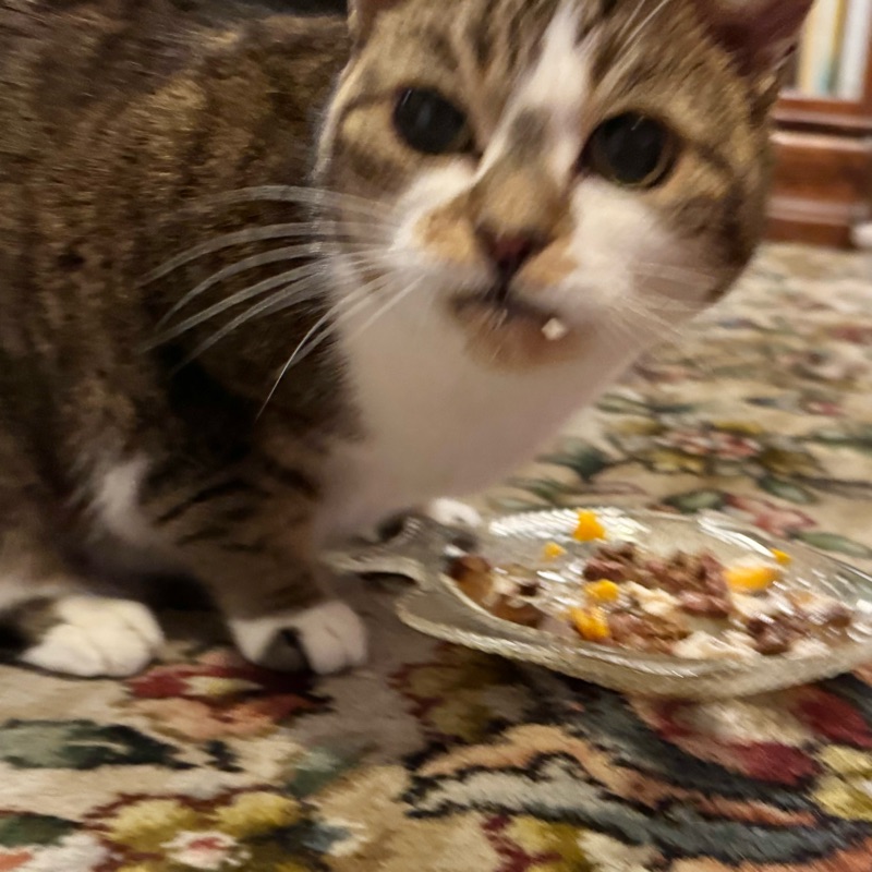 Had a superb day with Sally, turkey and all the trimmings, but this was the photo of the day. Piggie Mr Blue Skye, caught mid mouthful, with food on his face. He’s been eating all day, turkey, sausage, cat food, custard and cheese. He’s loved every minute.