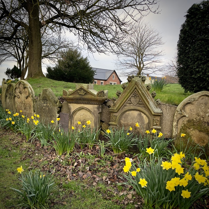 Gravestones used as a wall at Trimdon village church.