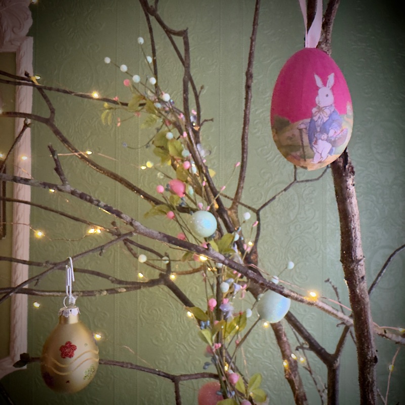 Some of the eggs on my Easter tree in the dining room.